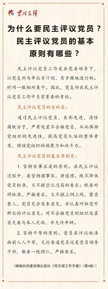 为什么要民主评议党员?民主评议党员的基本原则有哪些?今天,我们一起来学习。